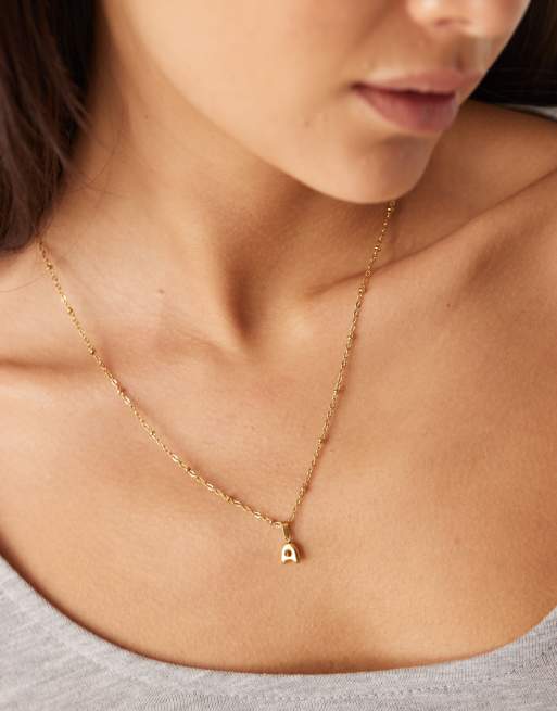 Lost Souls - Collier en acier inoxydable plaqué or 18 carats avec petite initiale A bombée