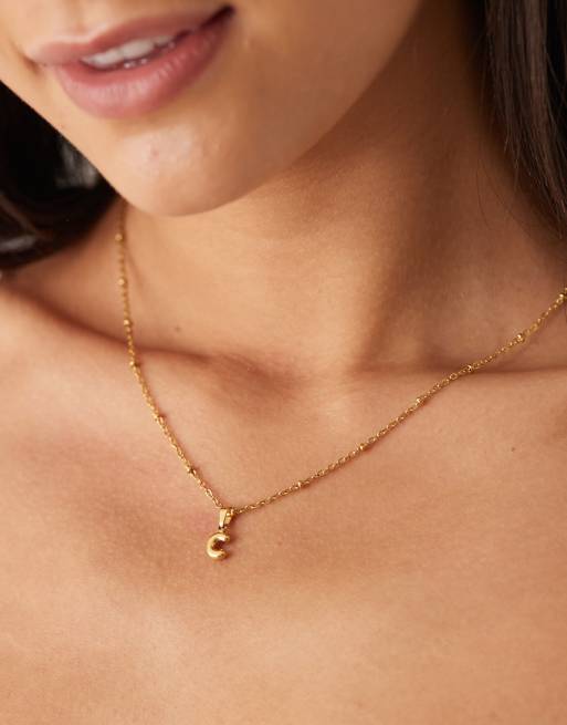 Lost Souls - Collier en acier inoxydable plaqué or 18 carats avec petite initiale C bombée
