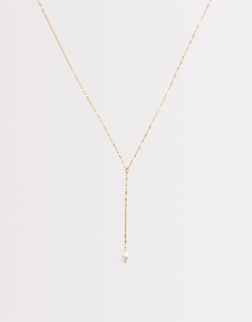 Lost Souls - Collier style lasso en acier inoxydable plaqué 18 carats à pendentif perle