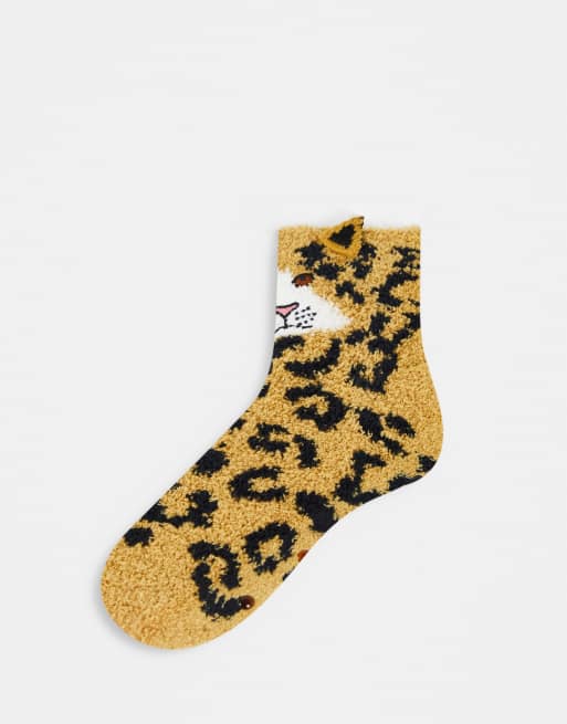 Loungeable - Coffret cadeau de Noël avec chaussettes confortables à imprimé léopard
