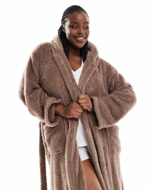 Loungeable Curve - Peignoir long à capuche confort en sherpa - Chocolat