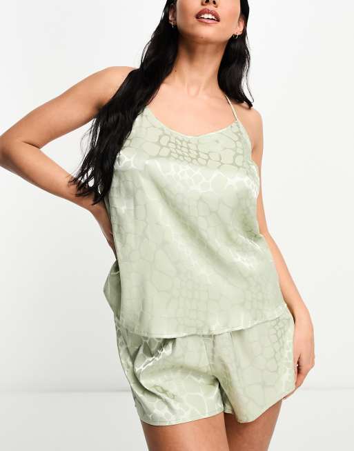 Loungeable - Ensemble caraco et short satinés en jacquard à imprimé girafe - Vert sauge
