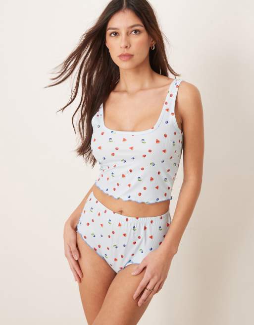 Loungeable - Ensemble de pyjama gaufré à imprimé fruits avec débardeur et culotte