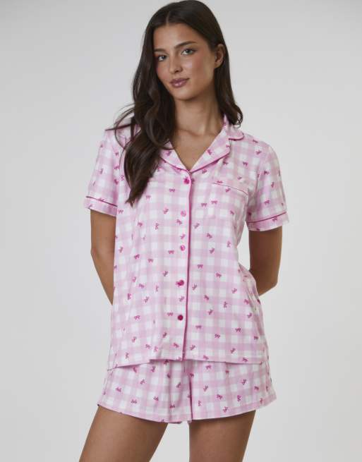 Loungeable - Ensemble ultra-doux avec short et top manches courtes à imprimé nœuds - Rose