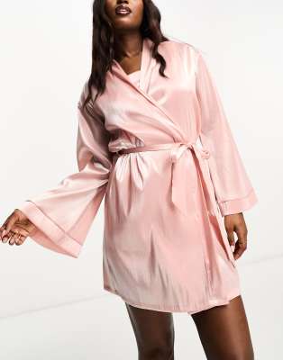 Loungeable - L'invitée - Robe de chambre courte en taffetas - Rose blush