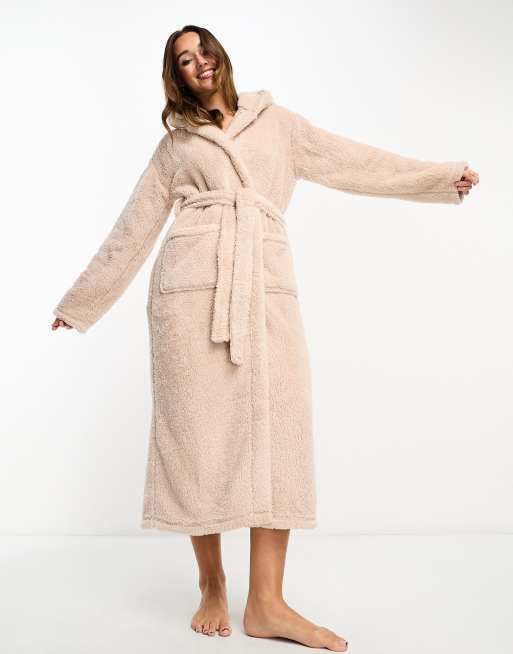 Loungeable - Peignoir long à capuche confort en sherpa - Vison