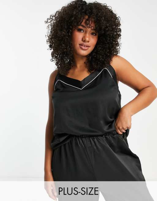 Loungeable Plus - Mix and Match - Caraco de pyjama en satin - Noir