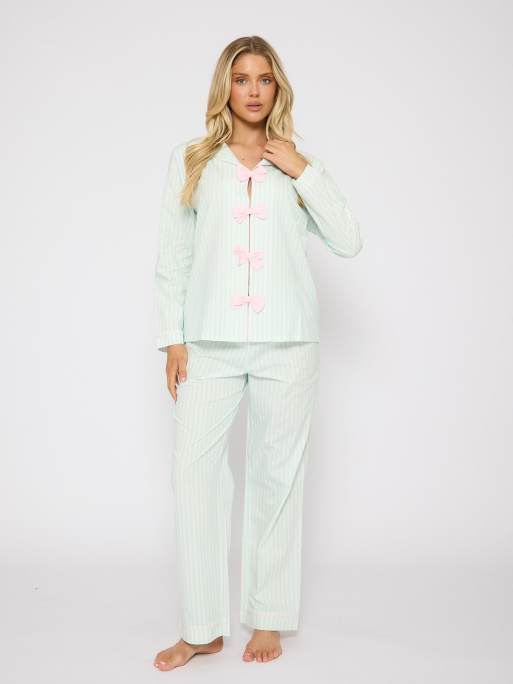 Loungeable - Pyjama rayé avec haut manches longues à nœuds - Menthe
