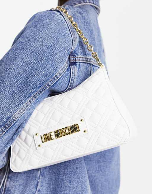 Love Moschino - Sac porté épaule à matelassage losange et logo avec bandoulière chaîne - Blanc