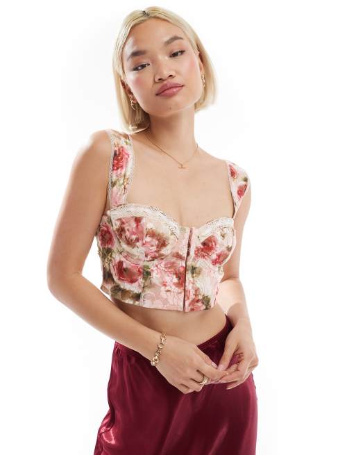 Love Triangle - Corset en dentelle avec ruban - Rose fleuri