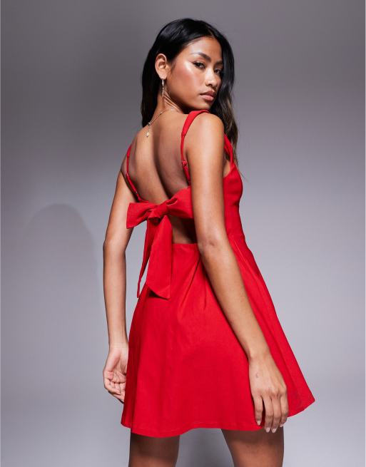 Love Triangle - Robe courte en bengaline avec encolure carrée et nœud au dos - Rouge