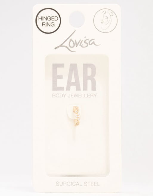 Lovisa - Anneau en acier chirurgical plaqué or avec fermoir cliquet et zircons cubiques façon zigzag - Doré