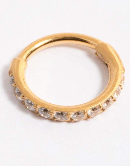 Lovisa - Anneau simple à charnière 6 mm en titane avec zircons cubiques - Doré