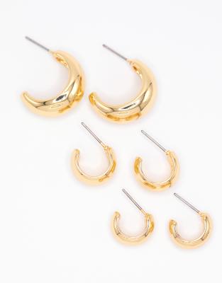 Lovisa - Lot de 3 paires de créoles épaisses en laiton plaqué or
