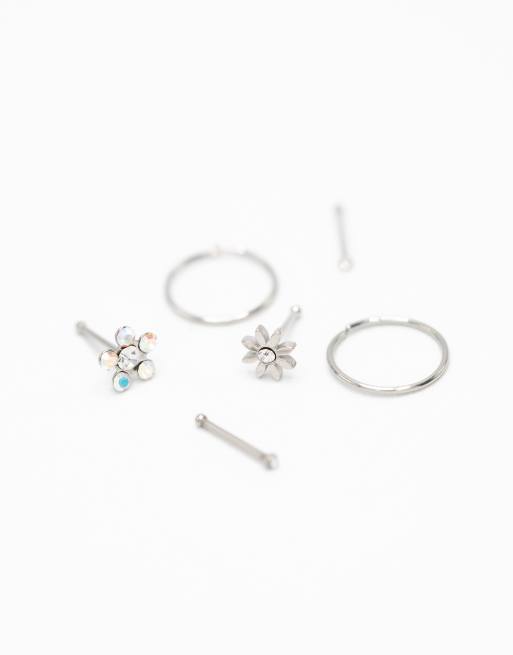 Lovisa - Lot de 6 piercings de nez en acier chirurgical à détail fleur - Argenté
