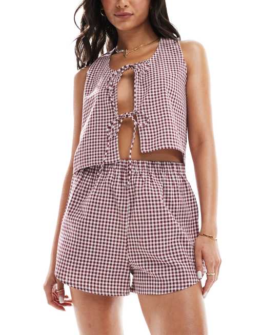 Luna - Pyjama short et débardeur à carreaux vichy - Bordeaux