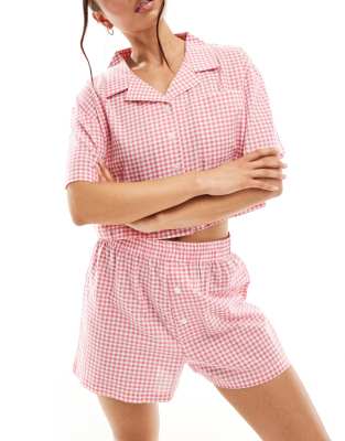 Luna - Short de pyjama style caleçon en gaze à carreaux - Rouge