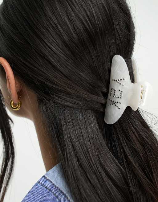 Madein - Pince à cheveux avec inscription Y2K ornementée - Blanc