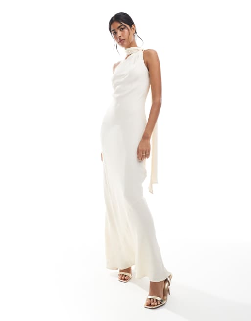 Maids to Measure - L'invitée - Robe longue asymétrique avec foulard - Ivoire clair
