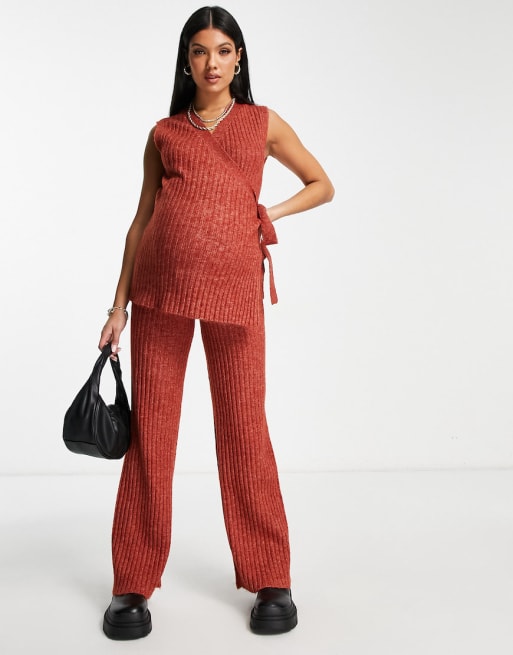 Mamalicious - Ensemble de grossesse avec pull sans manches et pantalon en maille côtelée