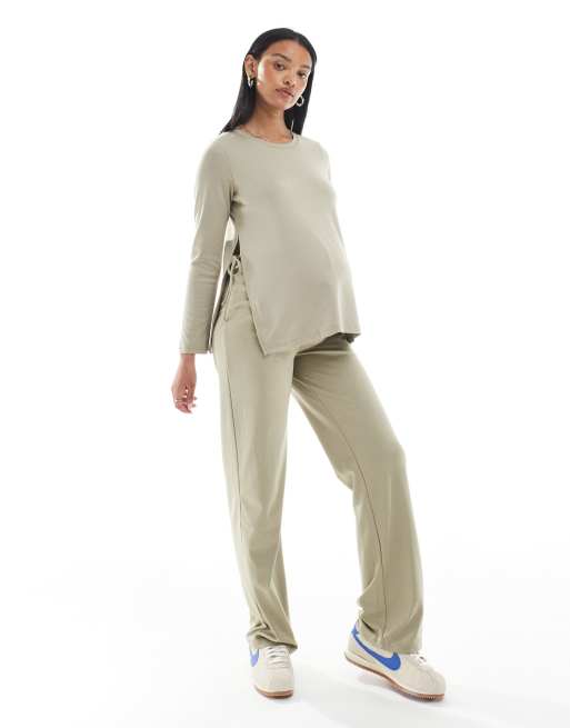 Mamalicious - Pantalon d'ensemble en jersey recouvrant le ventre - Beige