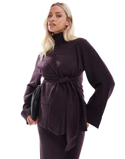 Mamalicious - Pull col roulé d'ensemble de grossesse en maille avec liens à la taille - Prune