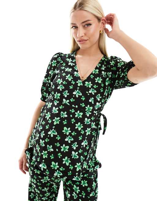 Mamalicious - Top d'ensemble de grossesse cache-cœur pour allaitement à imprimé feuille de palmier