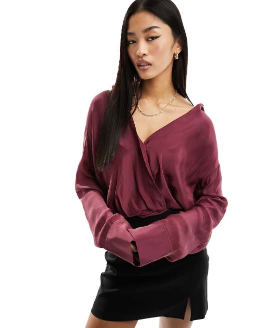 Mango - Blouse cache-cœur - Rouge foncé