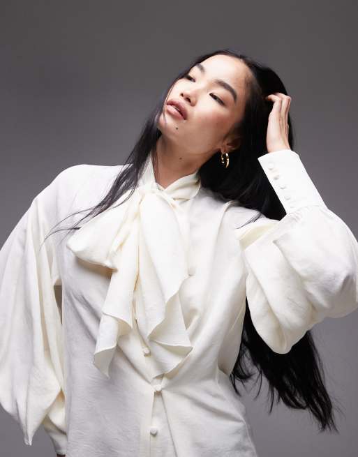 Mango - Blouse tissée nouée à l'encolure - Blanc