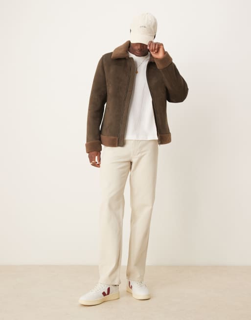 Mango - Blouson aviateur avec doublure contrastante en imitation peau de mouton - Marron