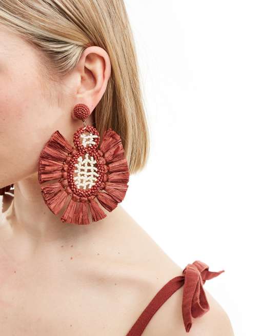 Mango - Boucles d'oreilles à houppes en raphia - Rouille