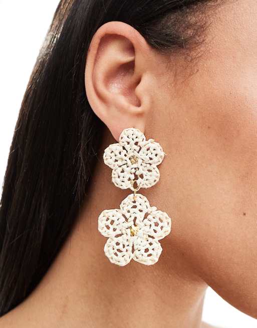 Mango - Boucles d'oreilles fleur à perles - Blanc