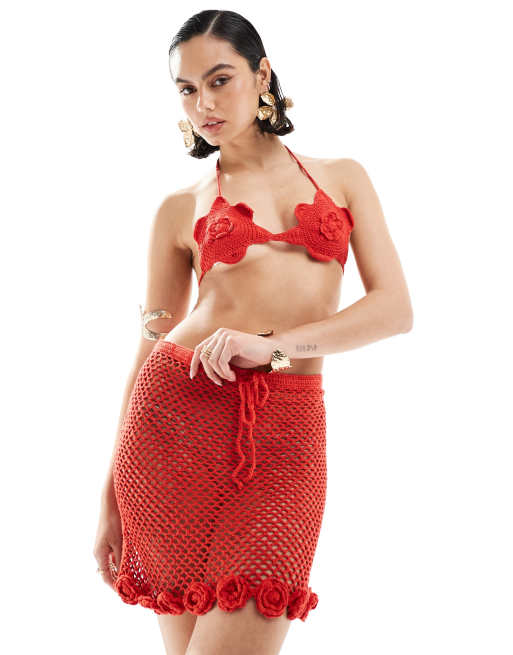 Mango - Brassière d'ensemble à fleurs au crochet - Rouge