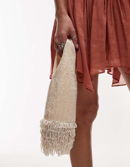 Mango - Capsule - Sac ornementé avec franges à perles - Blanc cassé