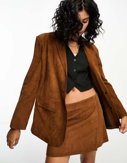 Mango - Capsule - Veste d'ensemble en daim - Marron