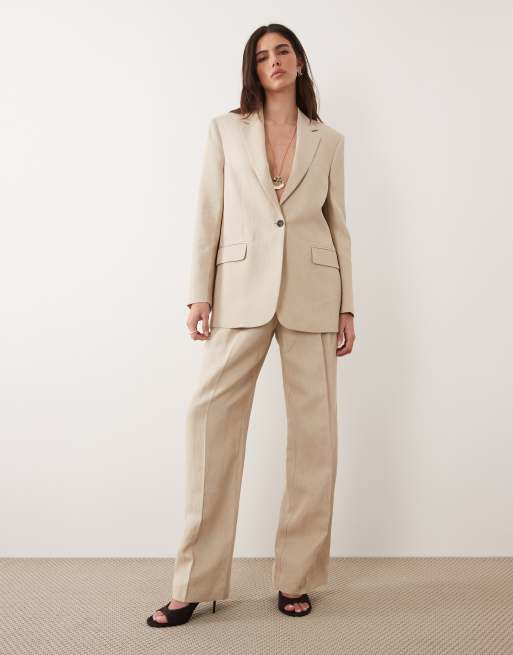 Mango - Casiopea - Ensemble décontracté en lin mélangé avec pantalon et blazer - Beige
