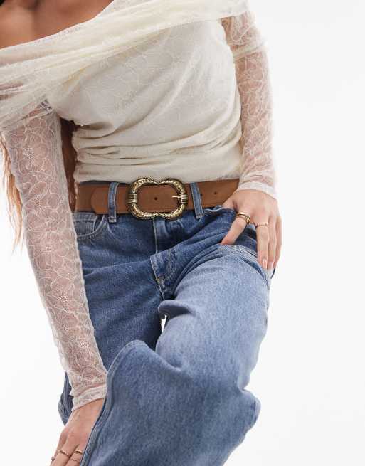 Mango - Ceinture en cuir à double boucle ronde - Marron