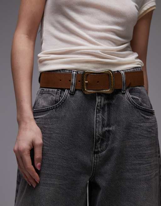 Mango - Ceinture en cuir épaisse avec grosse boucle carrée - Marron