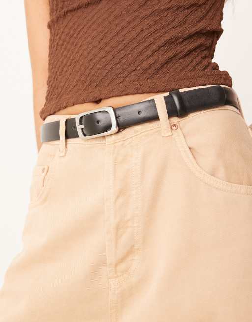 Mango - Ceinture fine avec boucle rectangulaire dorée - Noir
