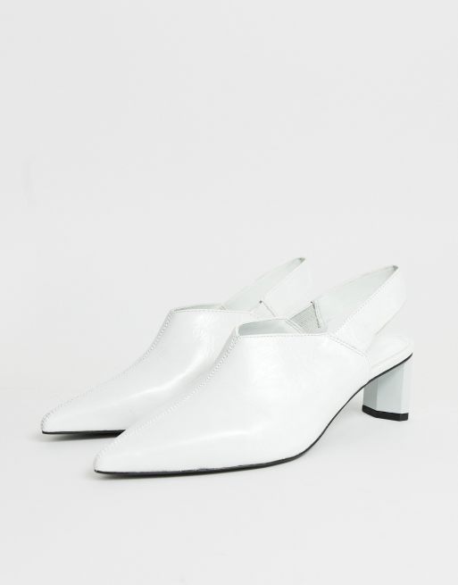 Mango - Chaussures en cuir à talons et avec bride arrière - Blanc