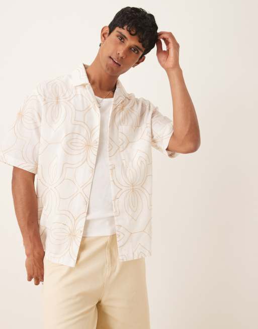 Mango - Chemise avec col à revers et fleurs brodées - Blanc