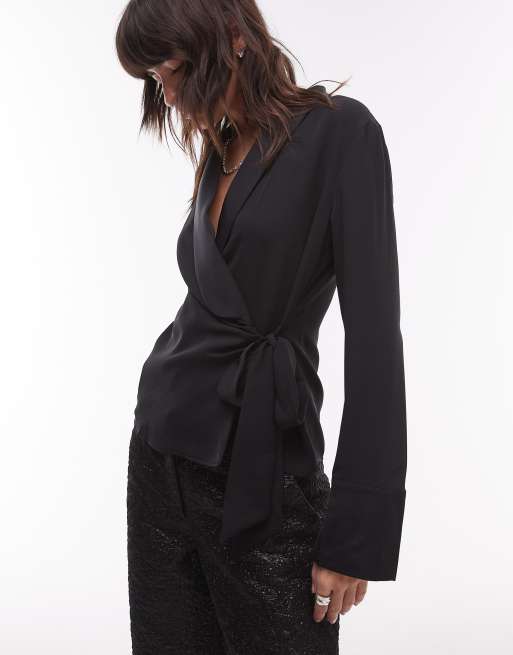 Mango - Chemise cache-cœur drapée - Noir