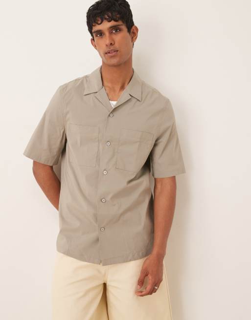 Mango - Chemise manches courtes en coton mélangé - Kaki clair