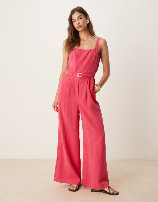 Mango - Combinaison à corsage structuré avec ceinture et plis à l'avant - Framboise