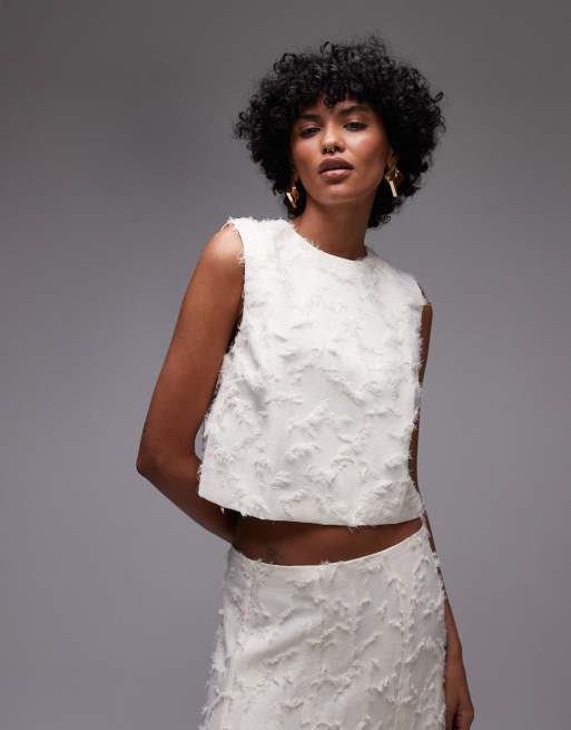 Mango - Crop top d'ensemble texturé - Blanc