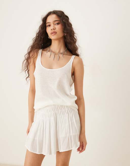 Mango - Débardeur en pur lin - Blanc