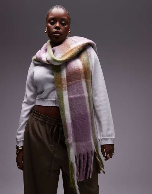 Mango - Écharpe en laine mélangée à grands carreaux - Vert et rose