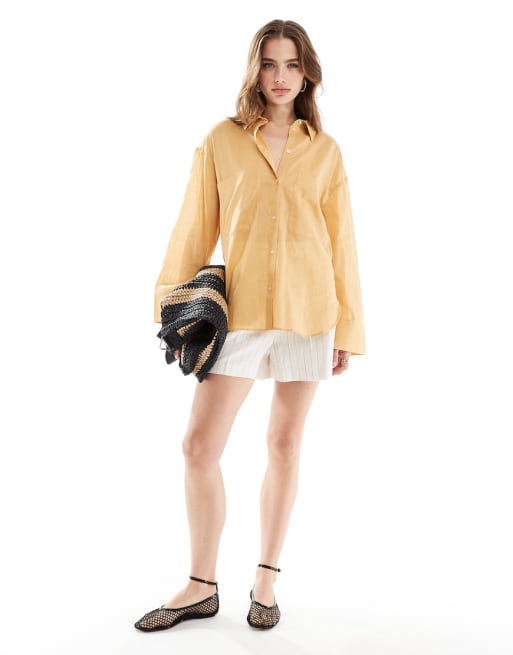 Mango - Ensemble chemise oversize et pantalon en lin - Orange