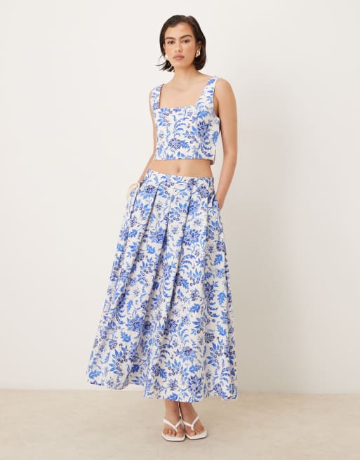 Mango - Ensemble top à encolure carrée et jupe à fleurs - Bleu
