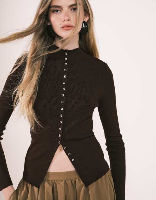 Mango - Gilet à col montant - Marron
